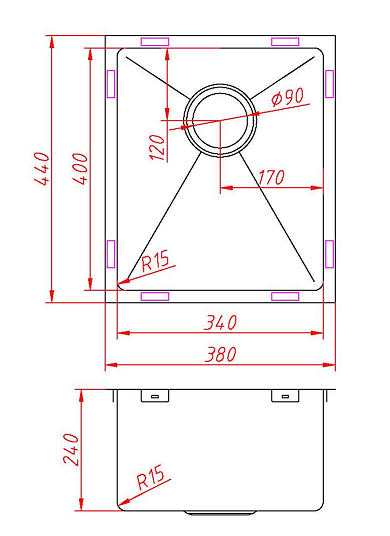 Outside 380 x 440 x 240mm