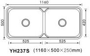 YH-237C Sink Flush Line Double Laundry Tub 1160*500 45L + 45L 1,2 or No Tap Hole Avaliable Please Note** * Grade 304 Stainless Steel * Polish Finish * Thickness 0.9mm * Lundry Tubs Avaliable With designer Waste